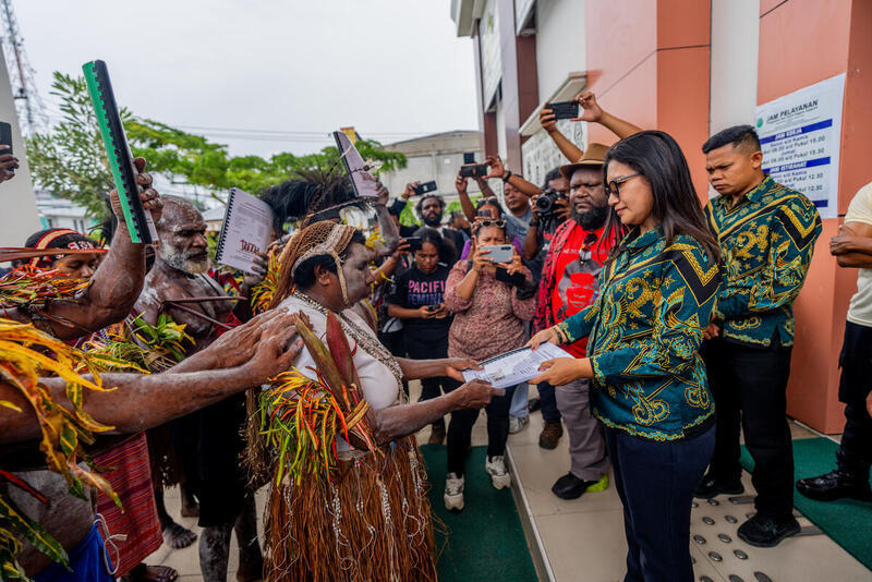 Jayapura, nirmeke.com – Masyarakat Adat Malind secara resmi mendaftarkan gugatan terhadap Surat Keputusan (SK) Bupati Merauke tentang kelayakan lingkungan hidup rencana pembangunan jalan akses sepanjang 135 kilometer ke Pengadilan Tata Usaha Negara Jayapura, Kamis (5/3/2026).